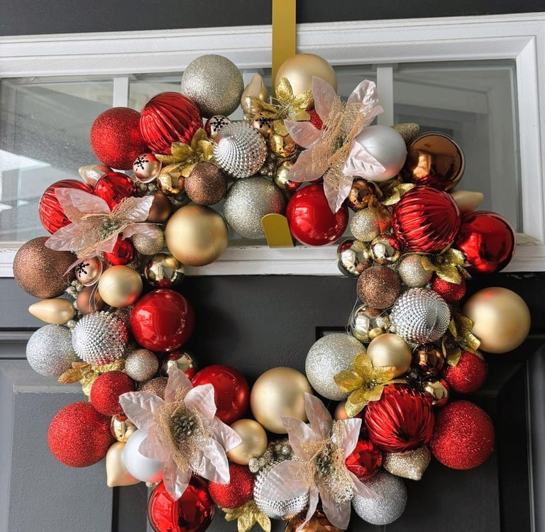 Start with larger decorations like pinecones or ornaments. Space them evenly around the wreath using a triangle pattern (top left, top right, bottom) for balance. Remember to secure each item firmly with glue or wire.