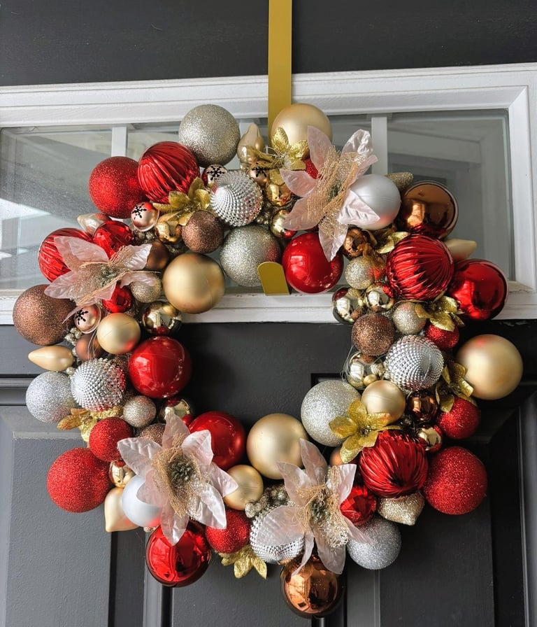 Create a simple bow using ribbon or use a pre-made one. Attach it to the top or bottom center of the wreath for a classic look.